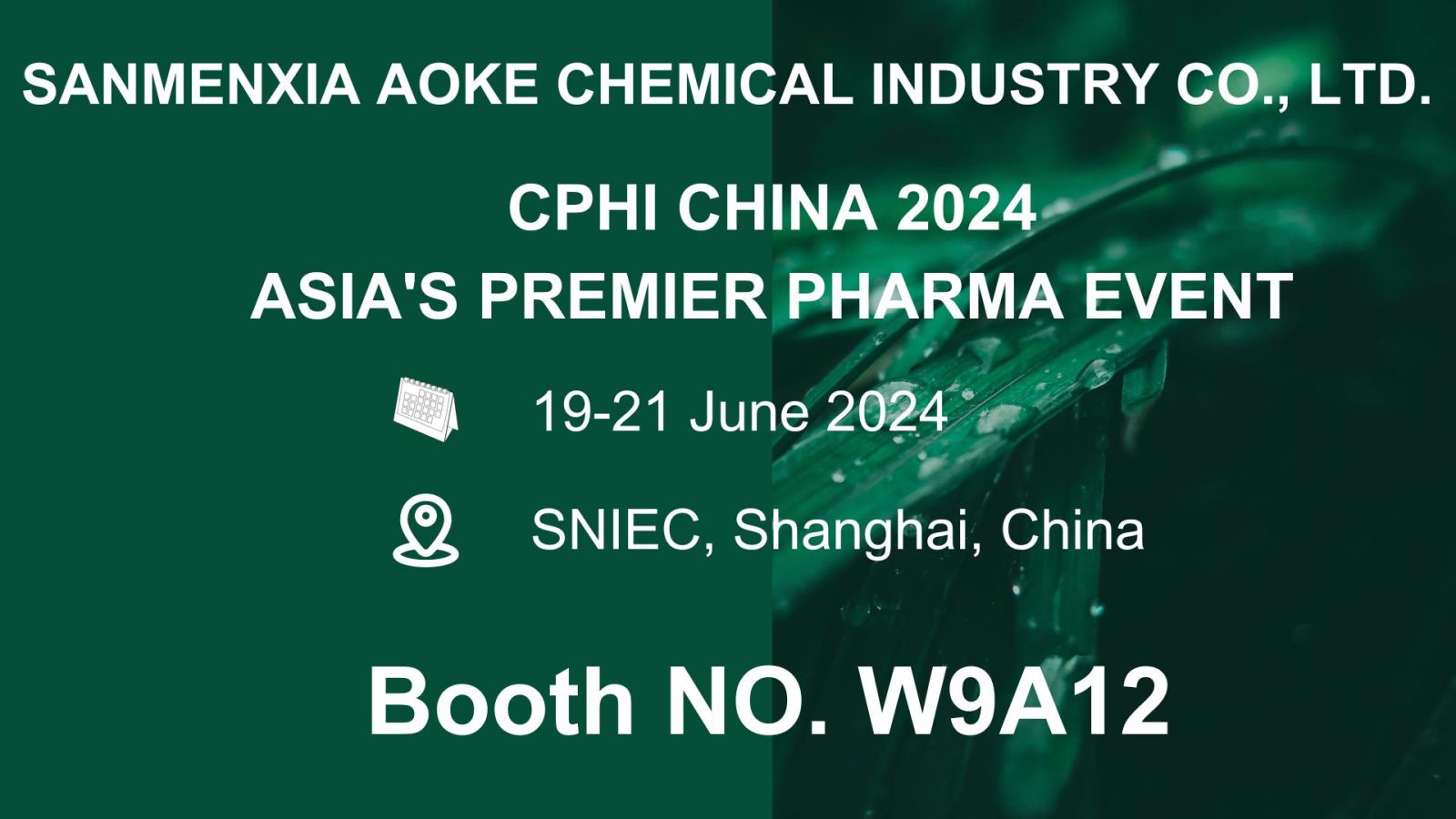 SANMENXIA AOKE CHEMICAL INDUSTRY CO..LTD. CPHI CHINA 2024 ASIA'S PREMIER PHARMA EVENT 19-21June2024 a SNIEC,Shanghai,China Booth NO.W9A12